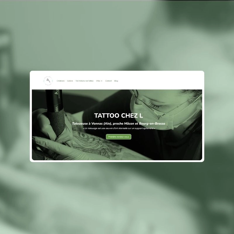 Tattoo chez L Tatoueuse à Vonnas (Ain) | ~ 5 000 visites / mois ~ 20 demandes / mois Agenda plein 3 mois à l'avance Visiter le site | 3 mois premiers résultats Google | Visiter le site |